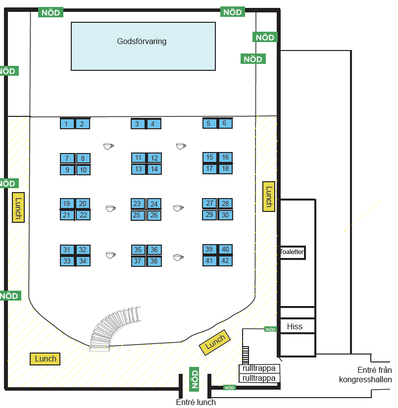Lunchen serveras på balkong ovanför utställningen, se bild nedan.